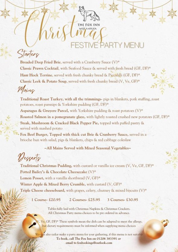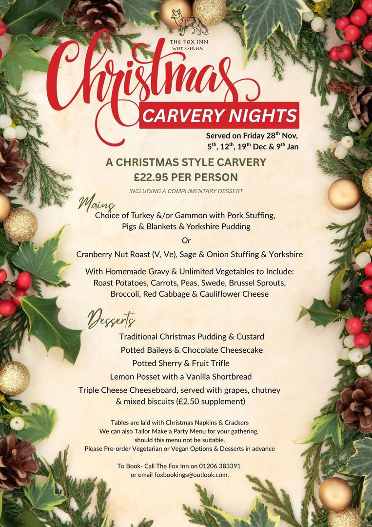 Our Christmas Set Menu and Festive Carvery Night Menus are below, and are available for partys from 2 people